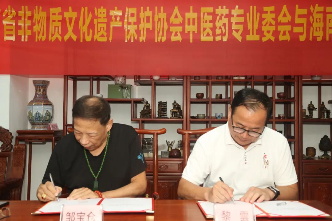 最后,赴迎宾一号8楼809室海南省非物质文化遗产保护协会中医药专业委员会办事处,与之座谈并签订战略合作协议。