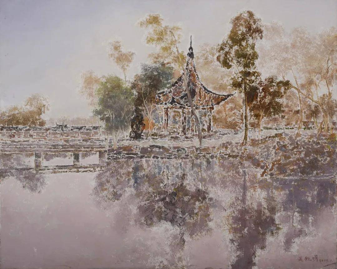 400年前,利玛窦来华传教,把欧洲油画作品带进中国,100多年后,到了乾隆时期,弘历命宫中少年奴仆,随洋人学泰西画法(油画技法),油画有了新叫法——西画,上个世纪,徐悲鸿、吴冠中等老一辈艺术家开拓了中西文化交流的里程碑,逐渐形成越来越富有中国特色的油画艺术创作。对于这个令许多当代中国艺术家钟爱的“舶来”艺术,中国一批批当代艺术家都在探寻着具有中国韵味的西方油画艺术精髓。吴秋明也不例外,他这一探索,就走过了四十多年。