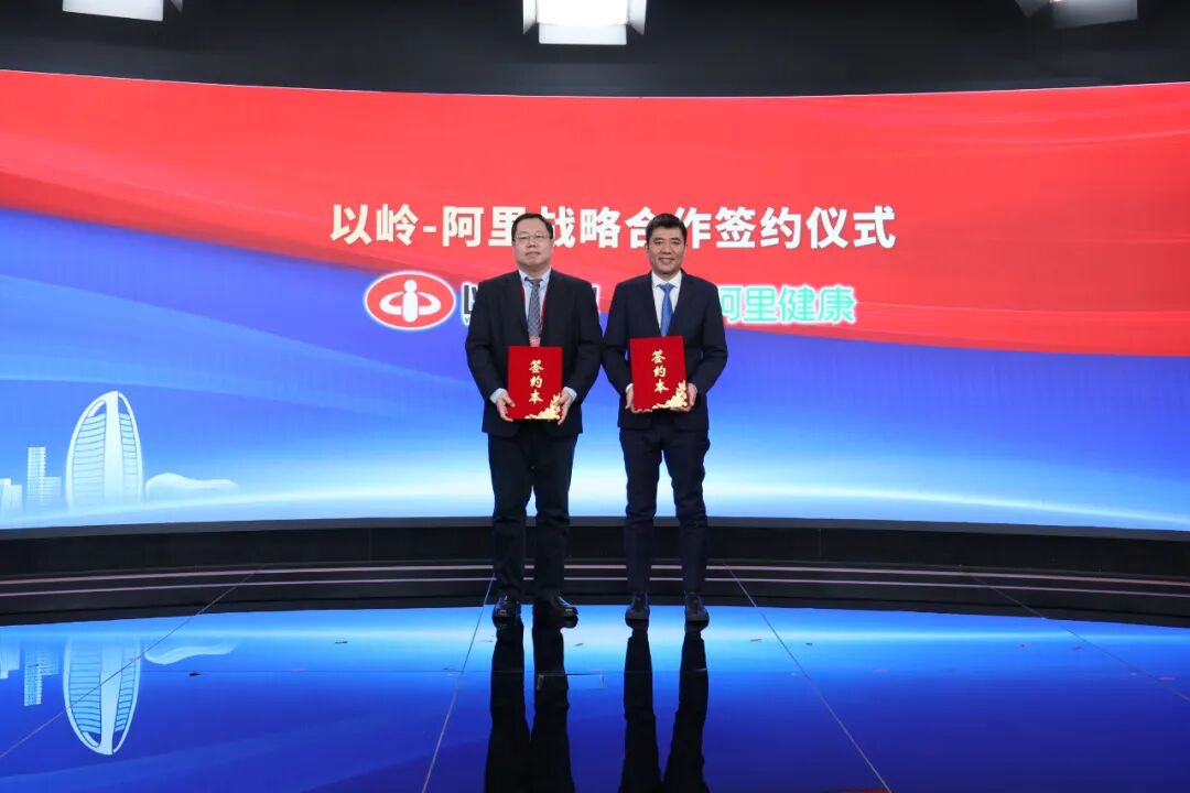 阿里健康自营事业部总经理、药品平台业务部总经理章泽(右)和以岭药业常务副总经理兼营销公司总经理张科源(左)代表签约