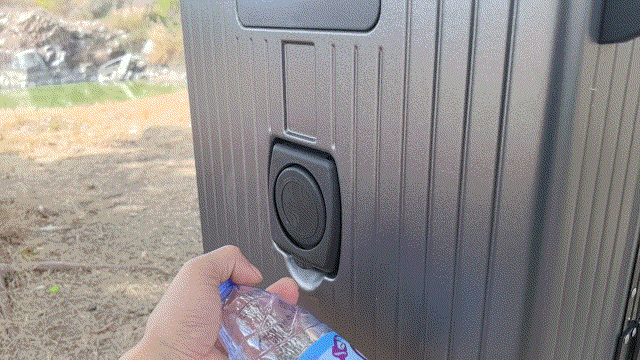 至于防水方面,箱体用的是四层进口德国科思创材质,是完全不会渗水的,这点不用质疑。同时开合的接合处也采用了防进水的设计,那怕是用花洒不停的洒水,里面也干干净净的,没有半点水(开箱前先摇晃甩掉箱体缝隙的水,不然缝隙的水会进入)。