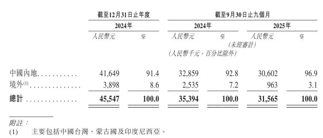 2024年、2025年前三季度,诺令生物的海外市场收入仅为389.8万元、96.3万元,占比仅为8.6%、3.1%。