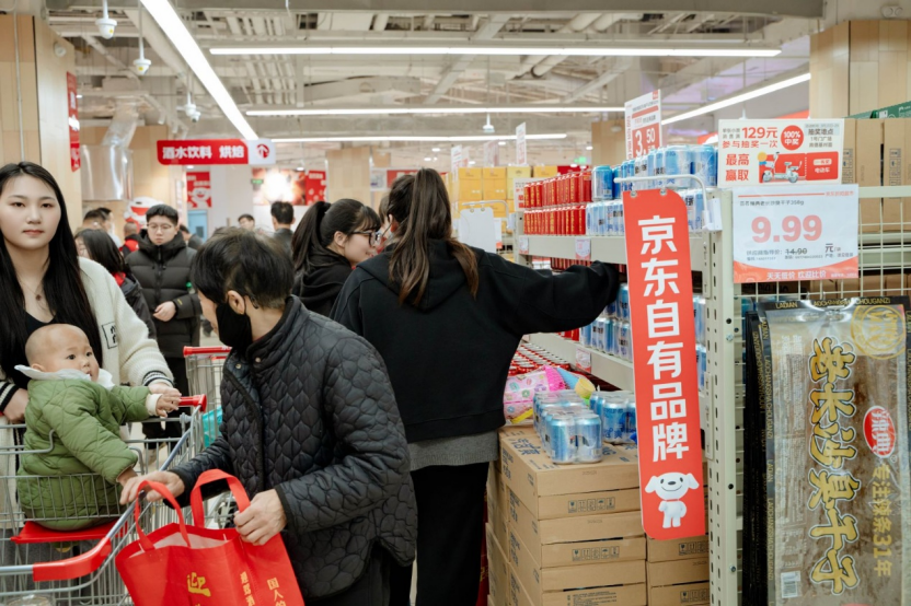在强大的供应链保障下,以京悦、京鲜坊极致性价比为代表京东自有品牌自有品牌矩阵成为宿州店开业的一大亮点,多款商品跻身热销榜单,以“只砍溢价,不砍品质”的承诺,成为市民购物车中的“常客”。7.9元/斤的京鲜舫脆皮烤肠多次售罄、高频补货,单日售出近1500袋,成为家庭餐桌、春游野餐的美味之选。此外,1元1罐的京东京造含气苏打水汽泡爽备受年轻消费者青睐,14.9元的5kg京悦除菌除螨洗衣液两日售出近6000斤,这一桶就能解决成人近3个月的洗衣需求,真正兼顾了品质与实惠,成为市民家中囤货的高性价比之选。
