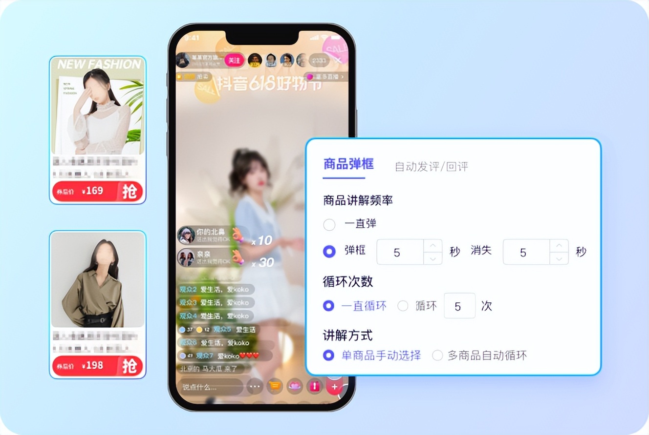 针对观众的咨询评论,系统可以根据关键词自动回复,覆盖常见问题,让观众的疑问得到及时回应。同时支持优质评论自动置顶,把好评、咨询度高的评论放在显眼位置,加深其他观众的印象,带动更多互动。这项功能不用耗费大量人工精力,就能做好直播间互动维护,既能减轻运营人员的工作压力,又能提升观众体验,留住更多进入直播间的流量,为转化铺路。