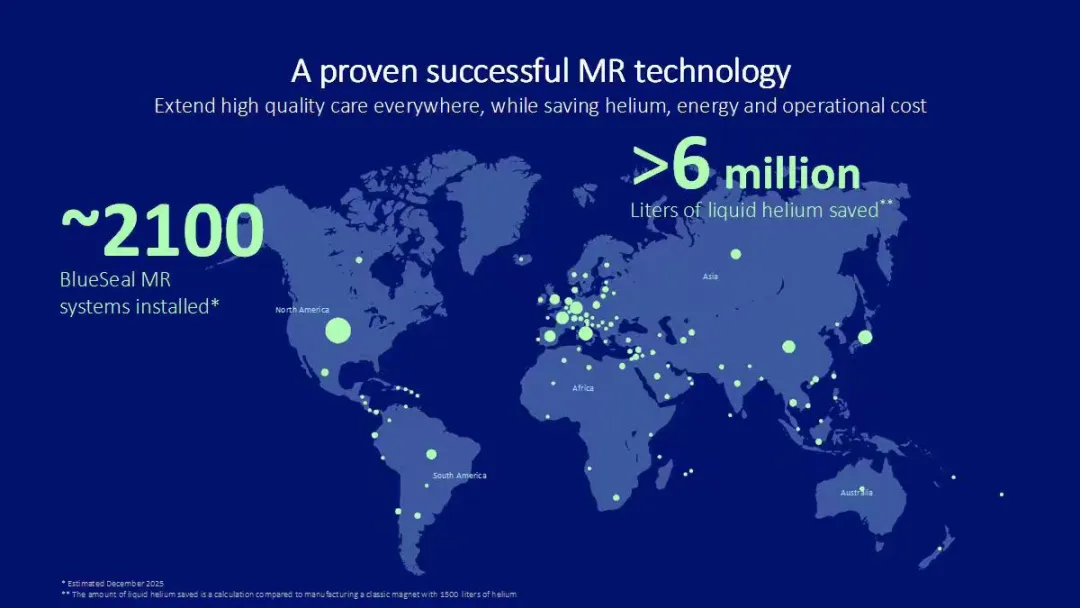 从物理层面上,它彻底清除了“失超”风险,将医院的运转从脆弱的全球供应链中剥离出来。目前多家磁共振厂商已经纷纷开始紧跟这一新的趋势,陆续推出自己的无液氦技术,目前已有另外2家公司的无液氦1.5T MRI已获得了FDA,其中一款也实现了70cm的大孔径,而飞利浦甚至推出了全球首款无液氦3T MRI。